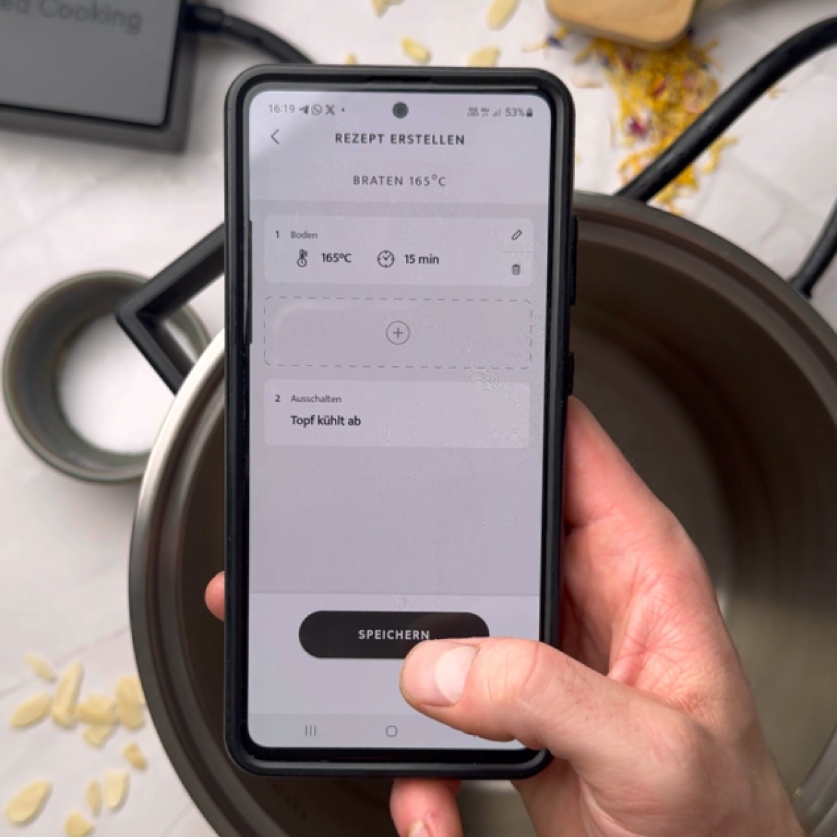 - Die Sensoren im Topf erlauben eine exakte Temperatureinstellung und -anzeige (+/- 1 °C).