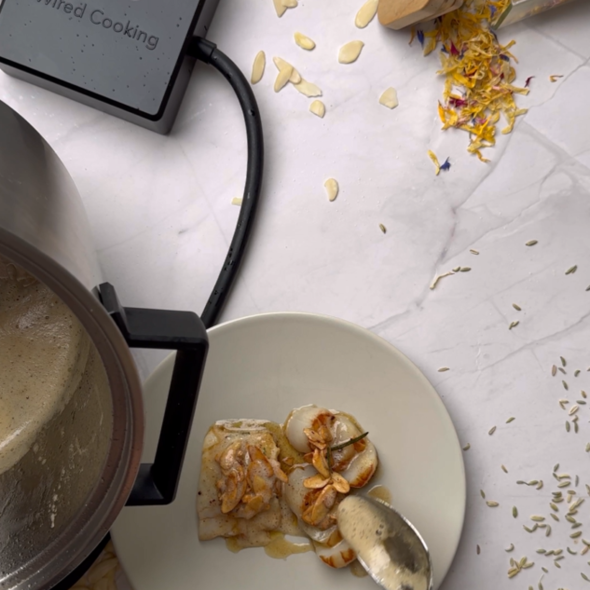 Der Wired Cooker ist perfekt fürs Sous-vide Garen geeignet. Er kann die Temperatur exakt regeln, und nach einer definierten Zeit starten oder gestoppt werden. Dabei ist er gut isoliert, was die Wärmeverluste minimiert; Konvektion führt zu einer guten Wärmeverteilung.