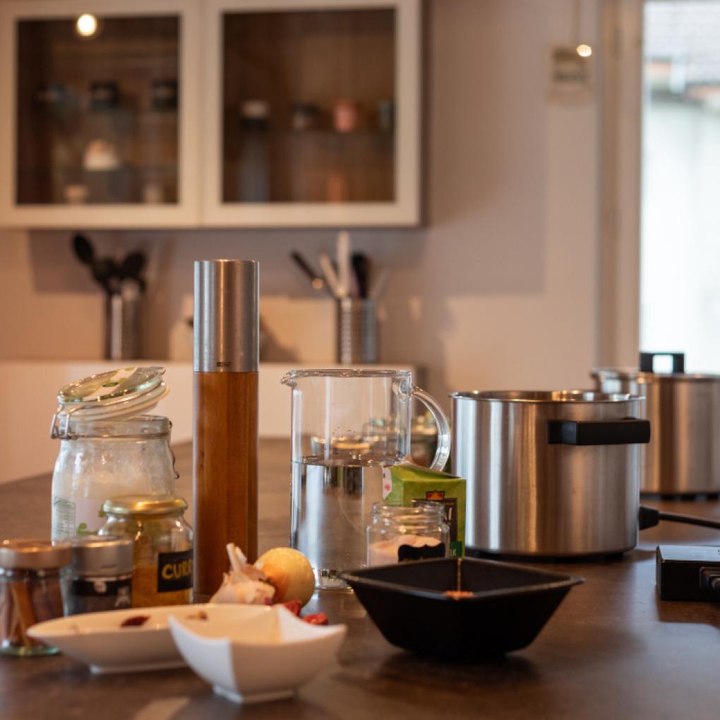 Zwiebeln und Knoblauch schneiden, mit dem Rest in einen Topf geben und die Linsen mit Wasser bedecken, ca. 3-4 cm. Wer Lust hat kann auch zuerst den Knoblauch und die Zwiebeln kurz in etwas Kokosöl anrösten und erst danach Wasser hinzugeben, alles aufkochen und auf schwacher Hitze köcheln lassen.