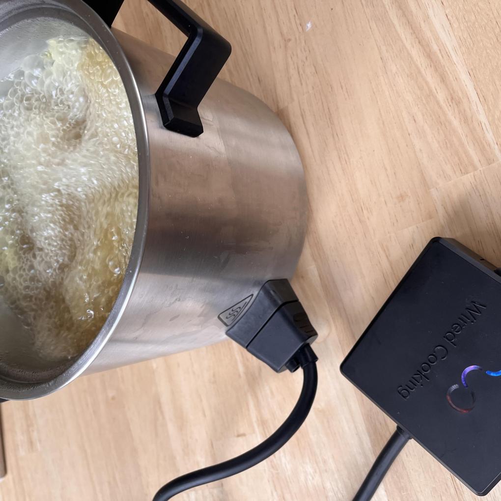 - Der Wired Cooker sollte nun auf 90 Grad 2 Stunde lang mit Lorbeerblättern das Gargut köcheln lassen.