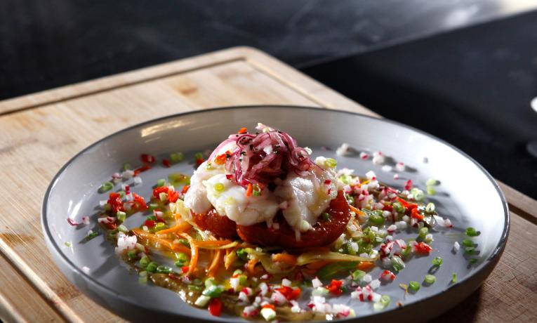 vonDavid GeisserZander Sous-vide und Jakobsmuschel mit MandelbutterEine überraschende, aber aussergewöhnlich wohlschmeckende Kombination ist Zander mit Jakobsmuschel. Für perfekte Konsist...zum Rezept
